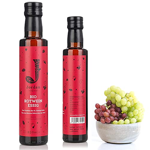 Dit product maakt deel uit van het azijnassortiment van Jordan Original. Het bestaat uit rode wijn, die uit de rijpe druiven van de druivensoort St.Georgs wordt gewonnen. Met zijn zure maar milde smaak vult het condiment bijna alle gerechten aan en geeft dit bijzondere iets.